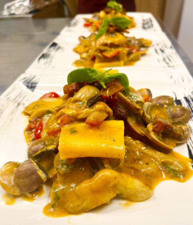 "A pranzo il primo di mare ottimo con ingredienti freschissimi. L’altro giorno a cena ho preso la pizza e confermo quanto detto, il tempo di lievitazione ha reso la pizza assolutamente digeribile oltre che buona."